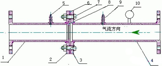 孔口流量计采用压力口和钢管组成。结构如图所示。