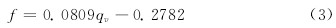 将表1中的数据拟合为线性函数,得出燃料涡轮流量传感器产生的脉冲频率与燃料流量之间的以下关系: